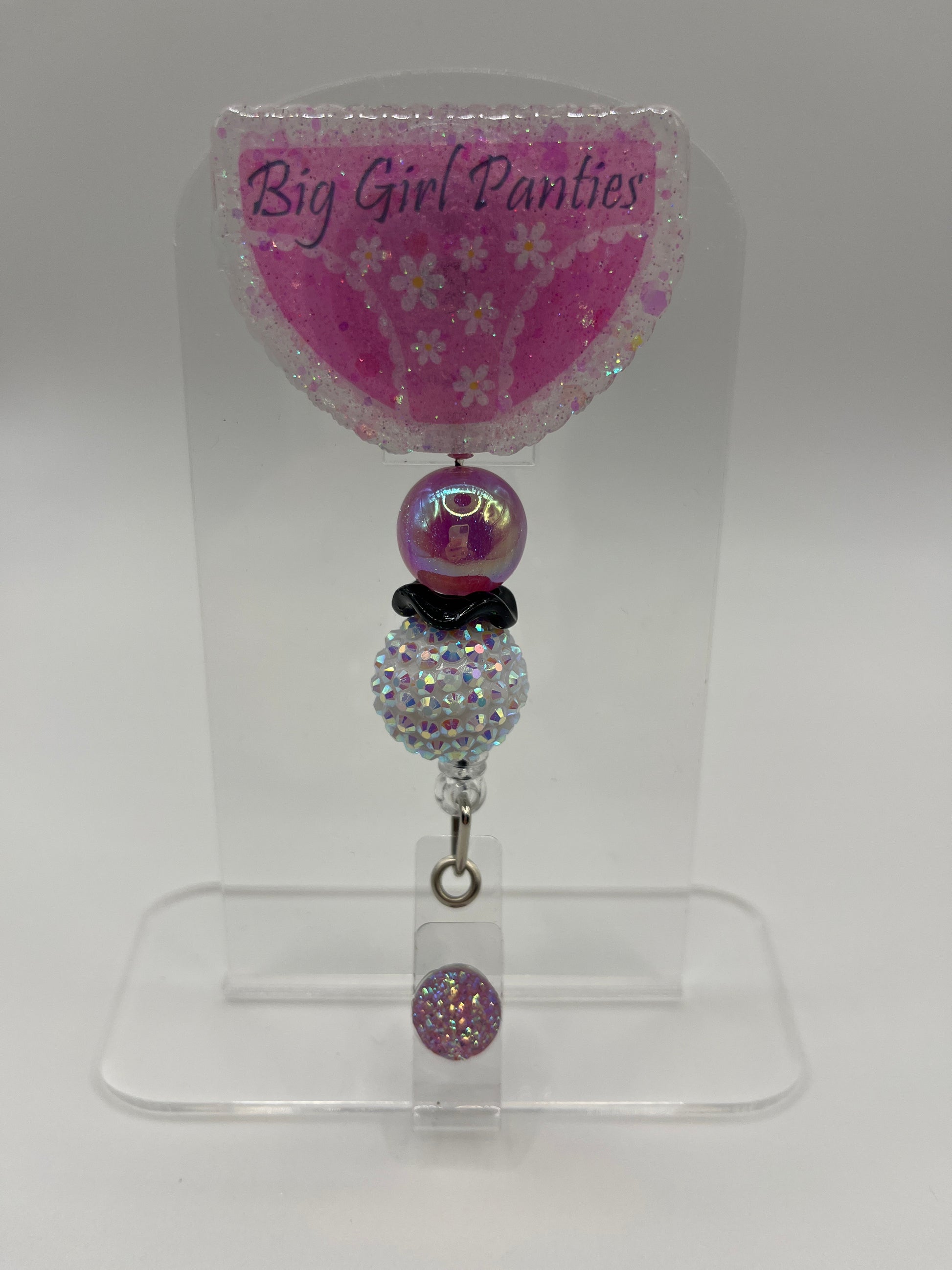 2 inch acrylic badge reel with alligator clasp.
