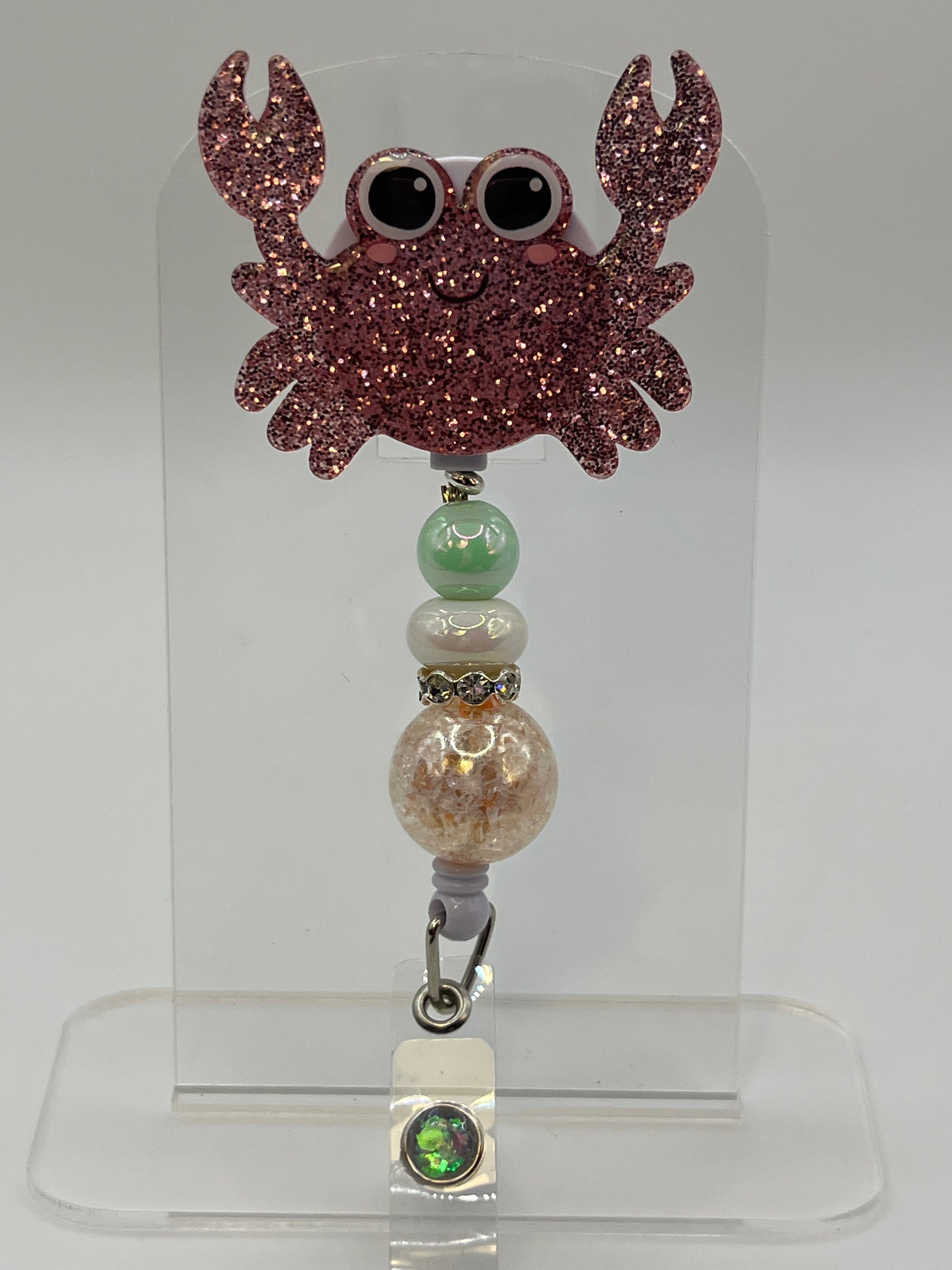 2 inch acrylic badge reel with alligator clasp.