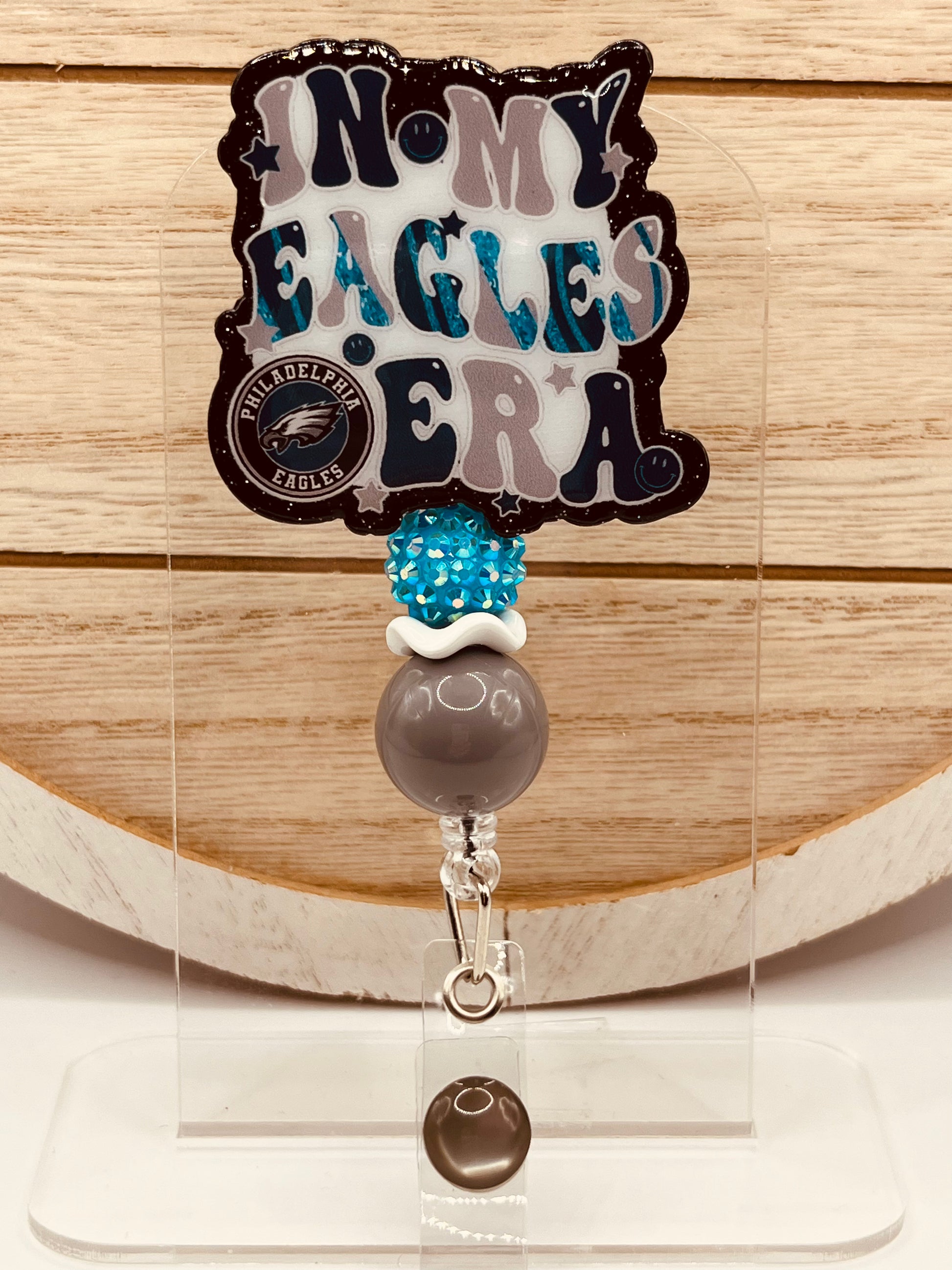 2 inch handmade acrylic badge, reel with alligator clasp.