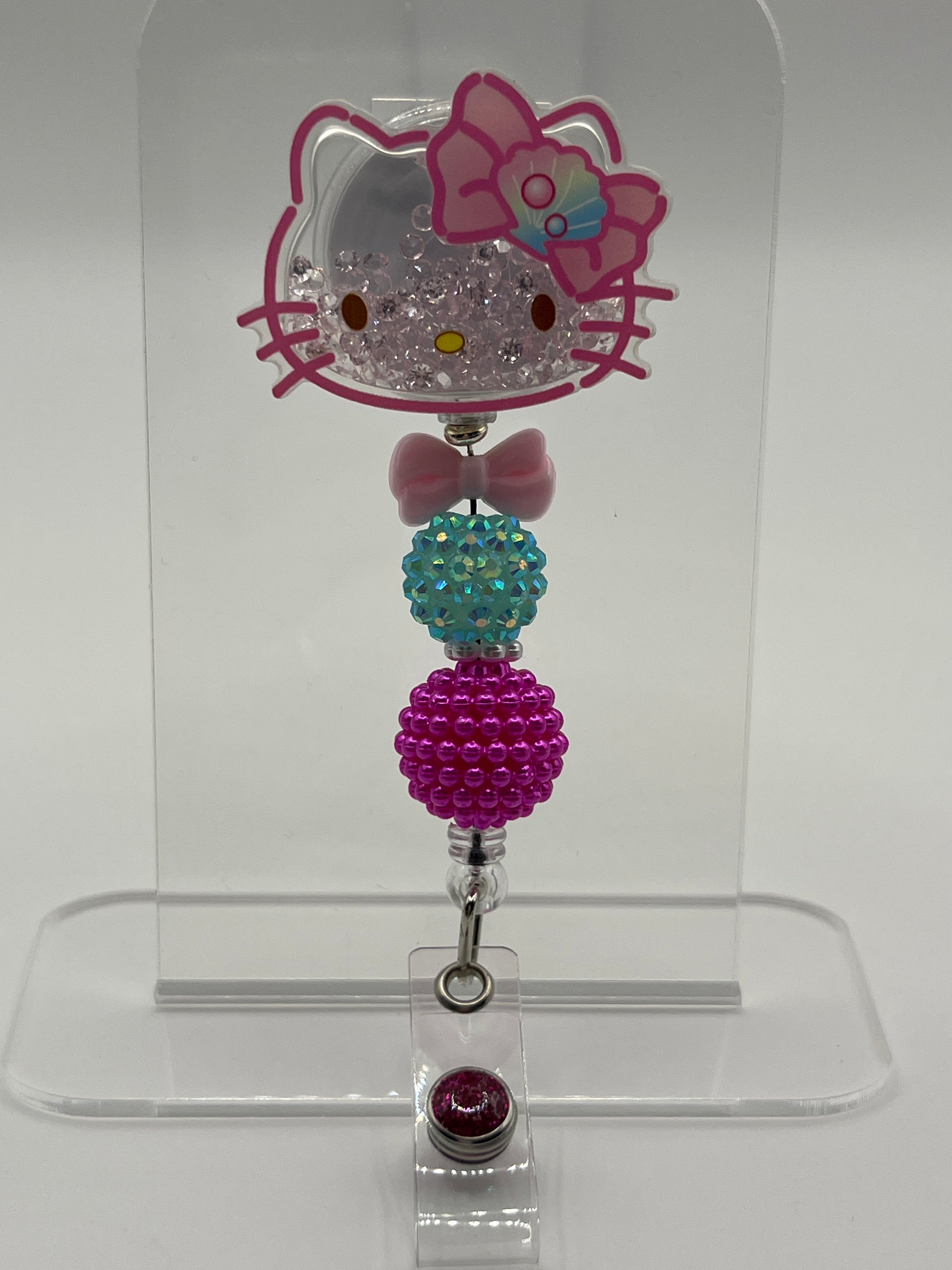 2 inch acrylic badge reel with belt clasp. This is a shaker badge reel.