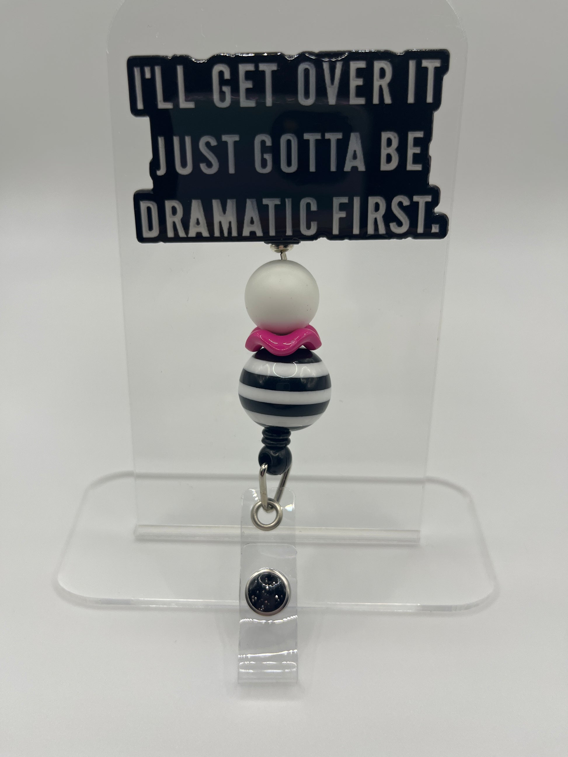 2 inch acrylic badge reel with belt clasp.
