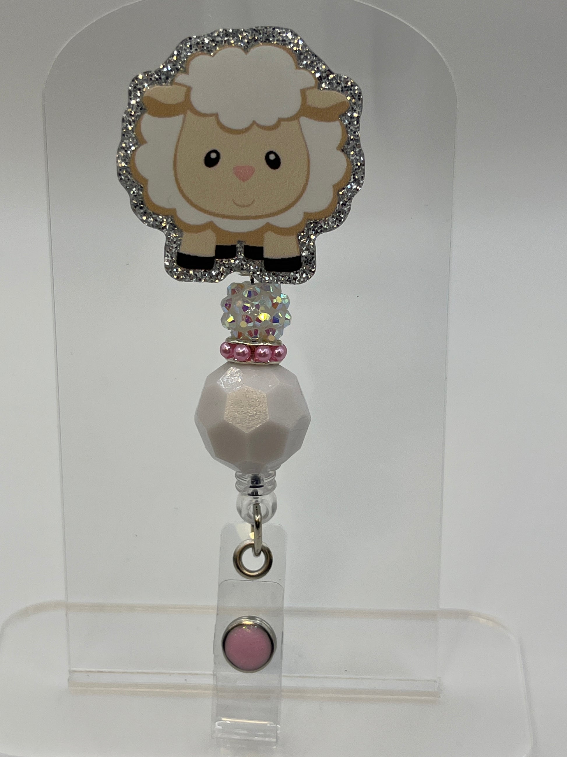 2 inch acrylic badge reel with alligator clasp.