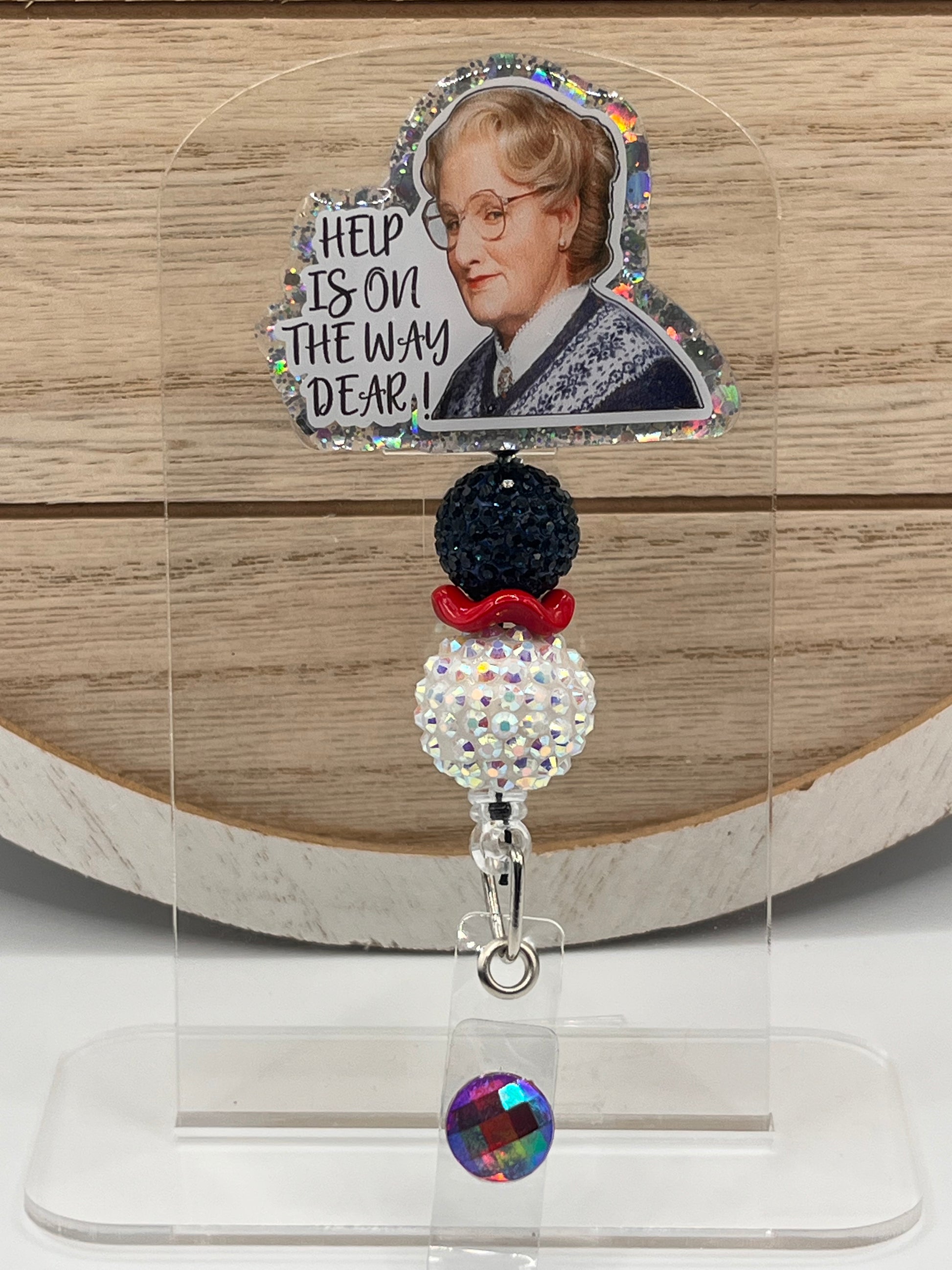 2 inch acrylic badge reel with alligator clasp.