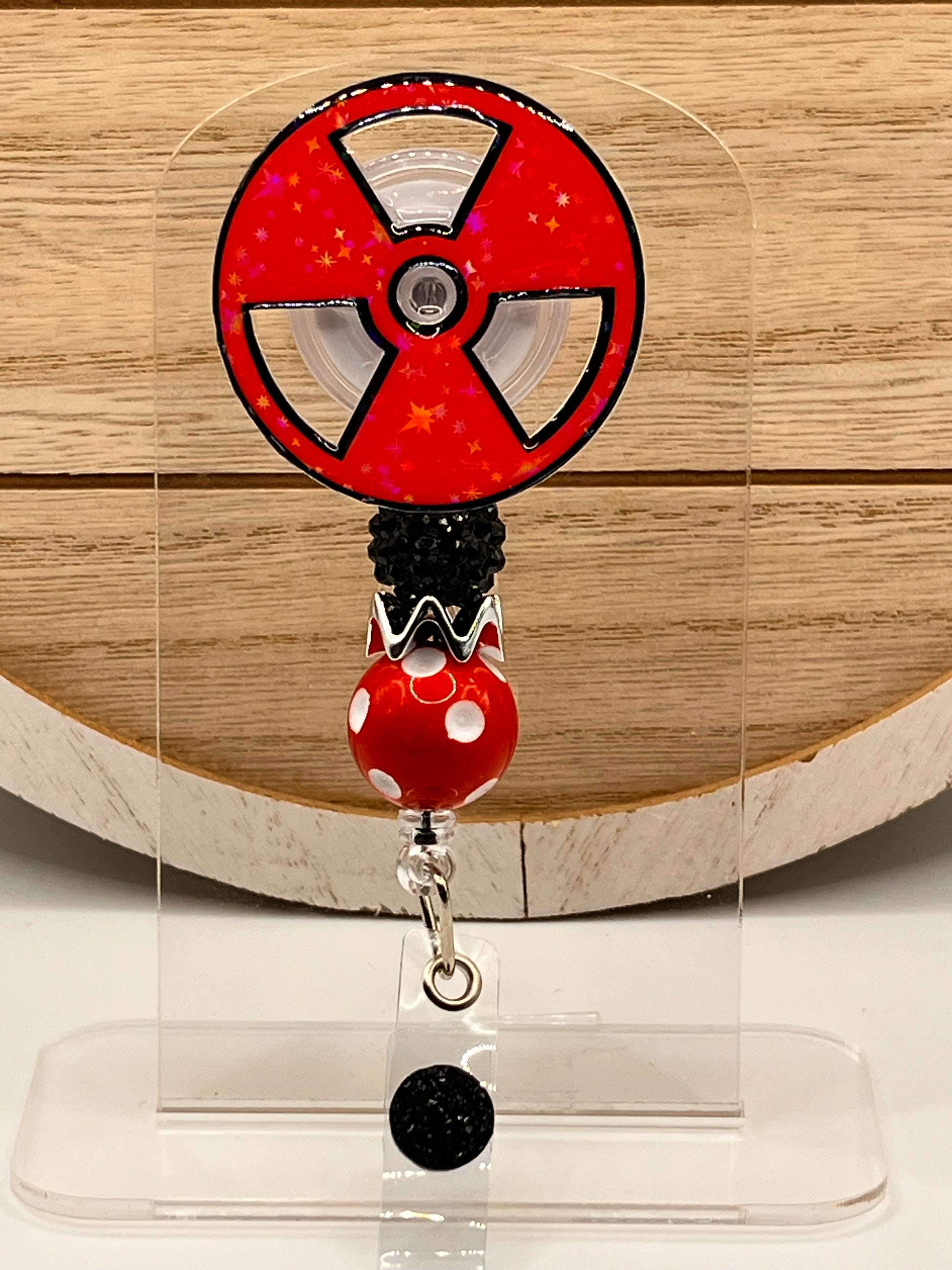 2 inch handmade acrylic badge reel with a alligator clasp.