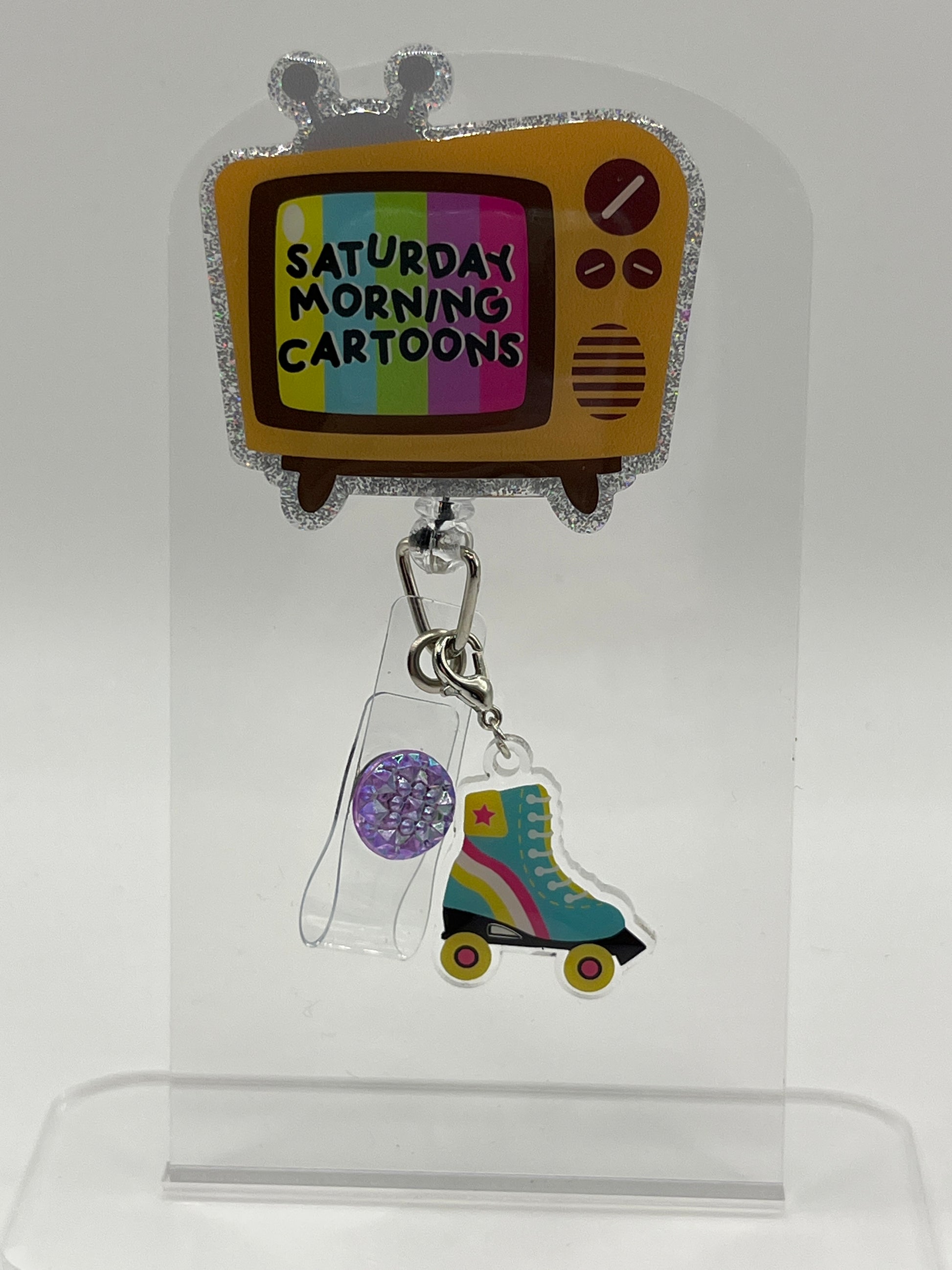 2 inch badge reel that comes with a alligator clasp. This badge comes with matching charm.