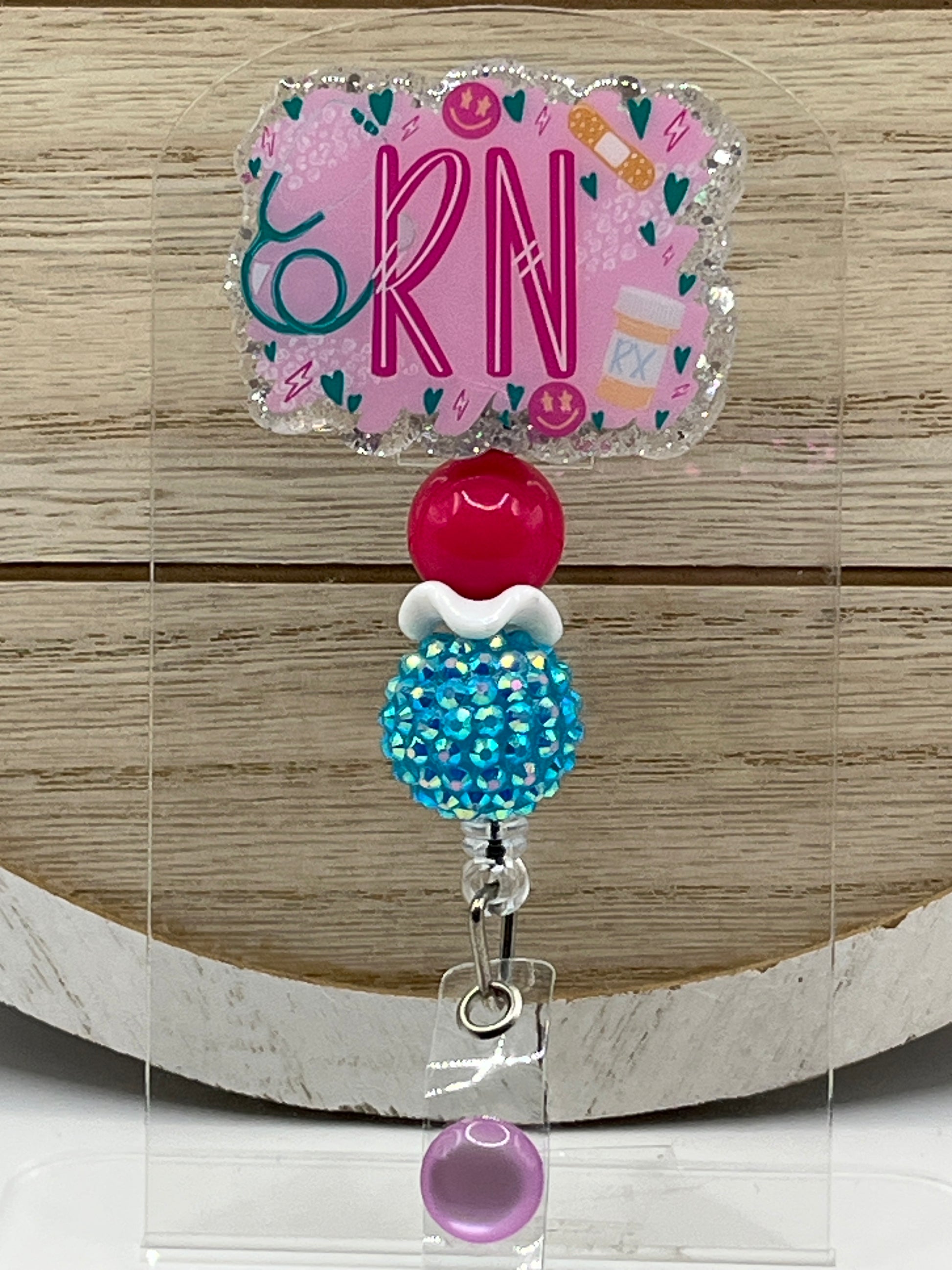 Handmade 2 inch acrylic Badge reel with alligator clasp.