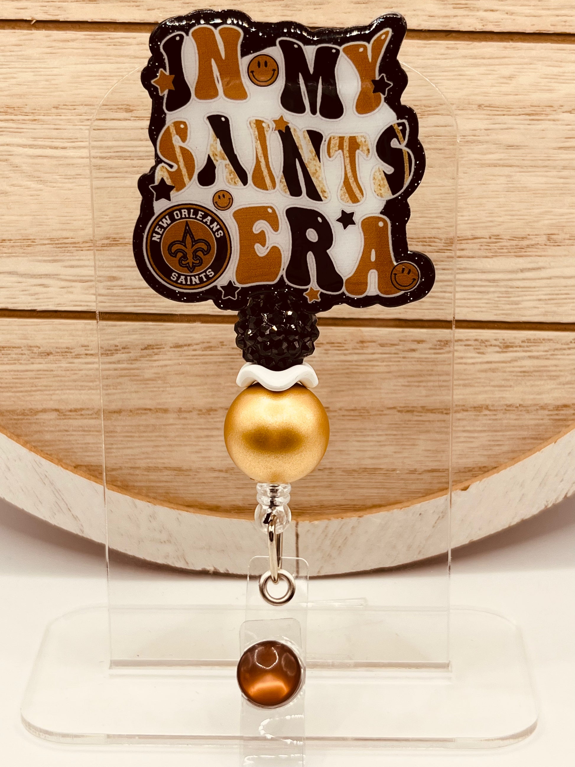 2 inch handmade acrylic badge, reel with alligator clasp.