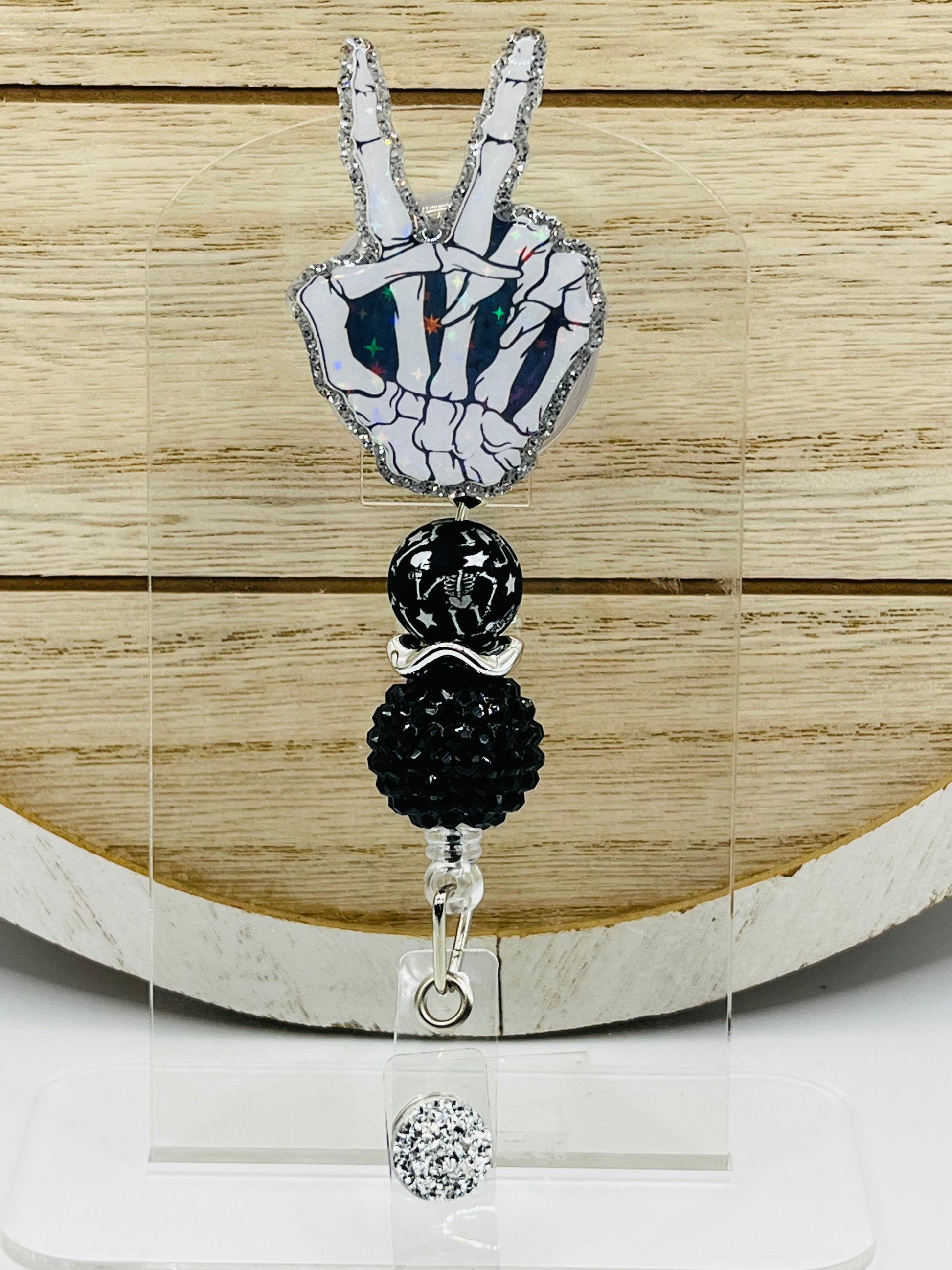 2 inch handmade acrylic badge reel with alligator clasp.