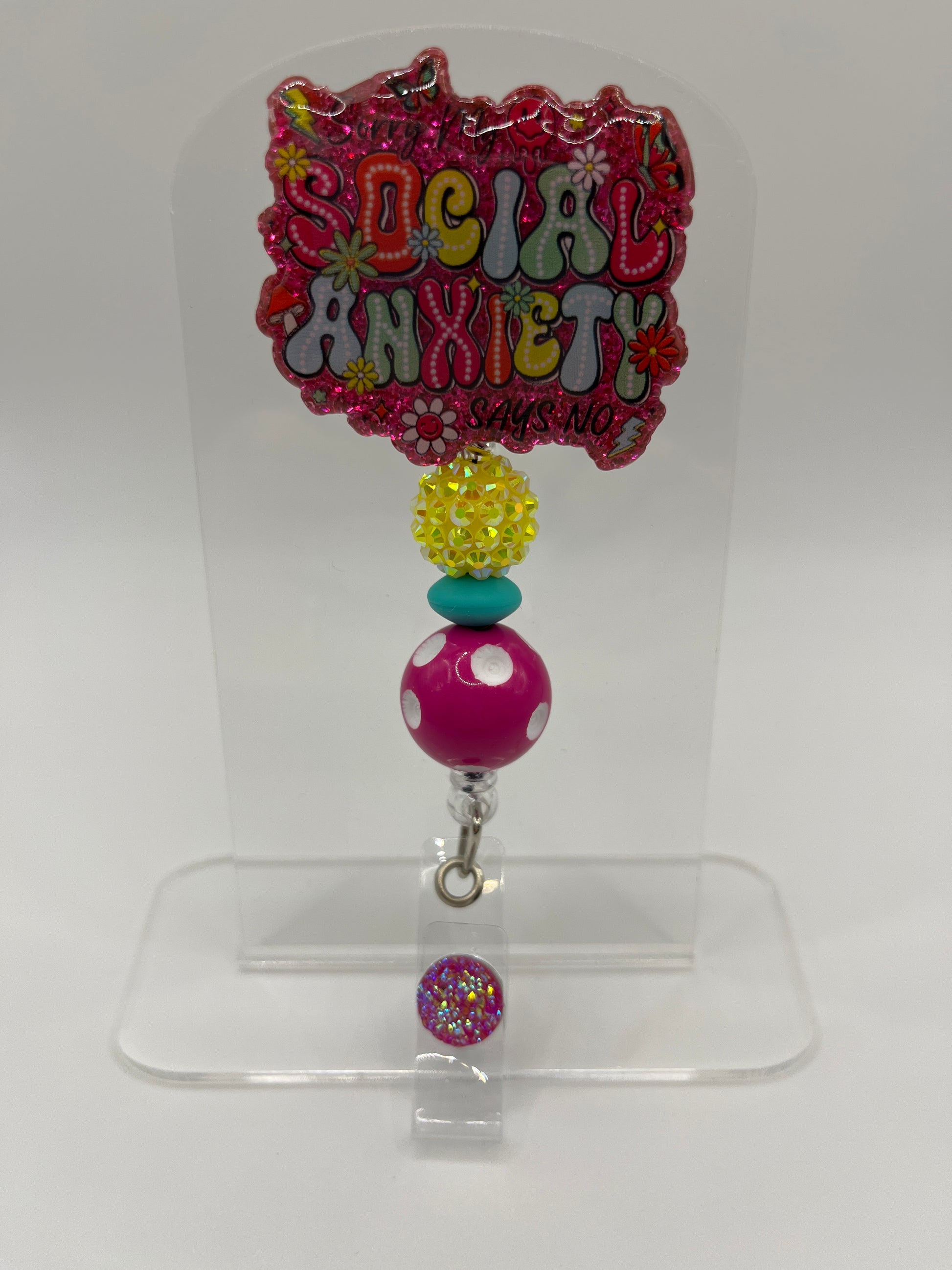 2 inch acrylic badge reel with alligator clasp.